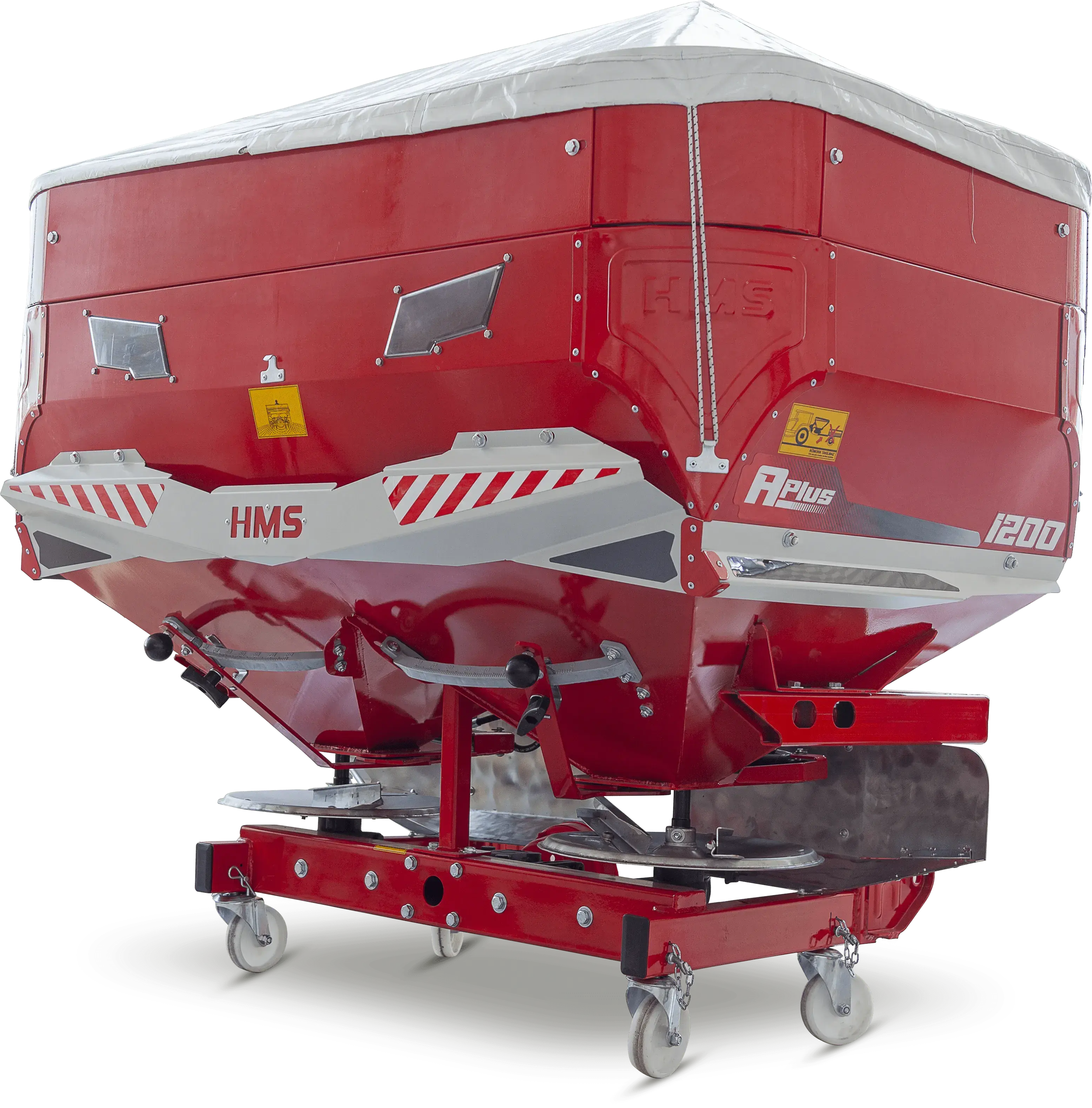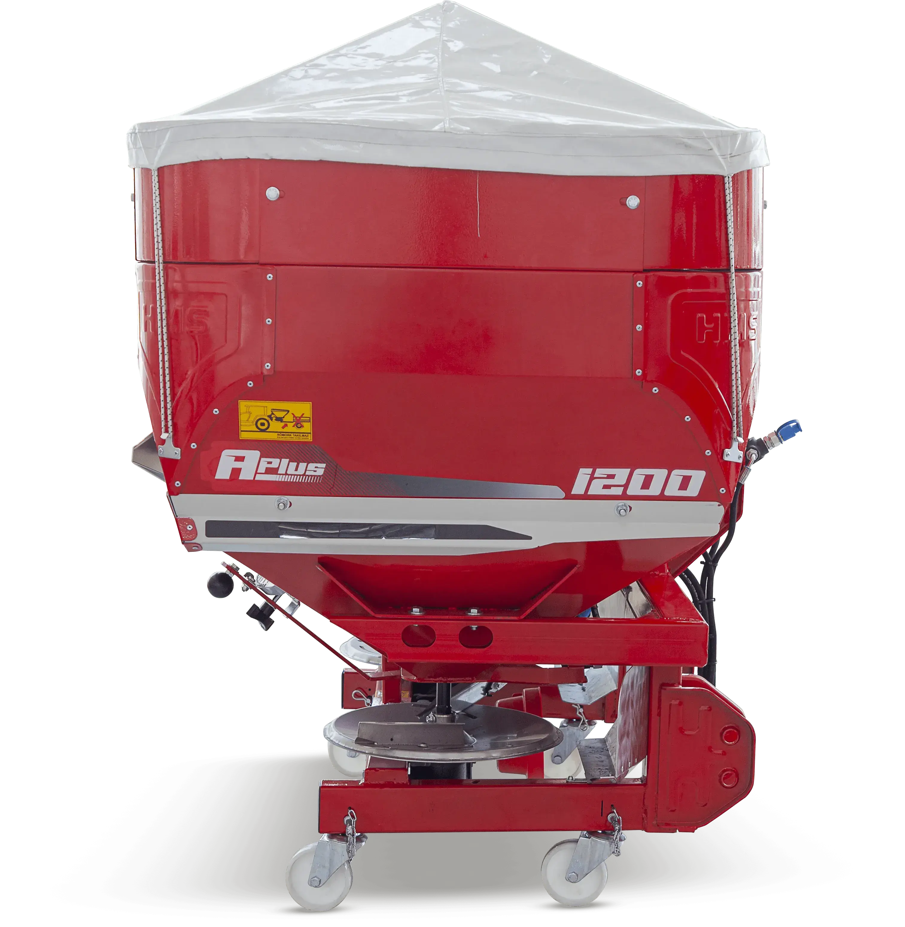 Asılır tip olarak imal edilen çift diskli gübre serpme makineleri 850 litre ile 1200 litre arasında ihtiyaca uygun olarak üretilmektedir. Gübre serpme makineleri hidrolik olarak kumanda edilebilir olup, hidrolik vana sayesinde sağ ve sol tarafa ayrı ayrı gübre atabilirsiniz. Hidrolik kumanda kolu sayesinde sınır başlarında traktör kabininden gübre atışı çok kolay yapılmakta ve seri bir şekilde kapatılarak gereksiz gübre sarfiyatı önlenmektedir. Makinenin gübre atım iş genişliği 10-24 m arasındadır, isteğe bağlı olarak alacağınız disk ve kanat boylarına bağlı olarak iş genişliğini ayarlayabilirsiniz. Gübre atım mesafesi gübrenin cinsine bağlı olarak değişiklik gösterebilir. Gübre deposu alt kısmında ters V şeklinde bir ayırıcı saç ile ikiye bölünmüş ve içinde bulunan dikey karıştırıcı ile gübre akışı kesintisiz sağlanmaktadır.