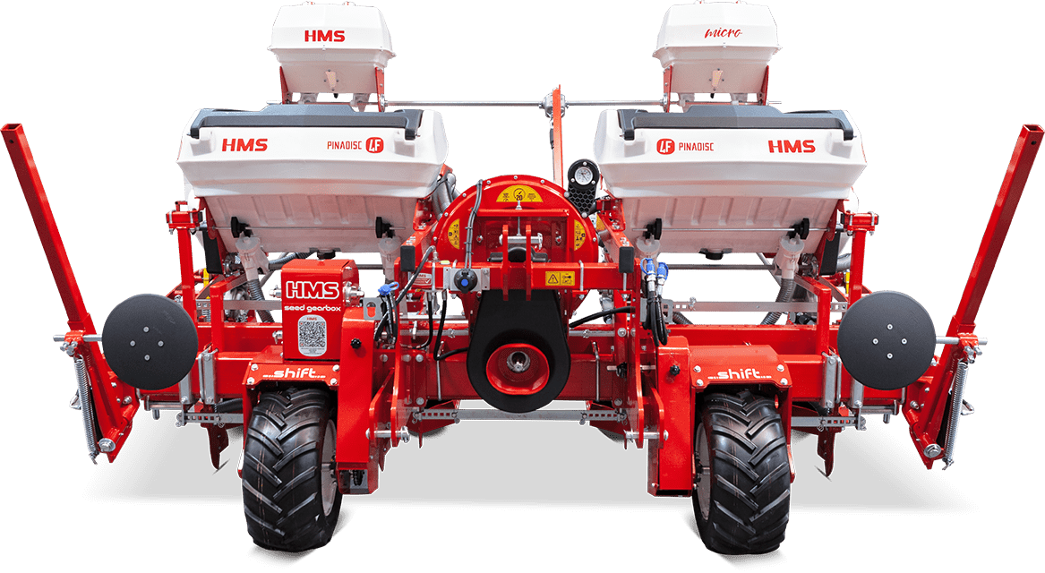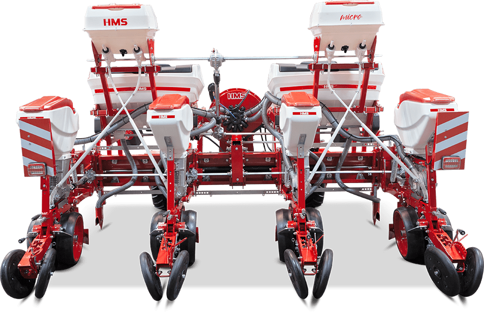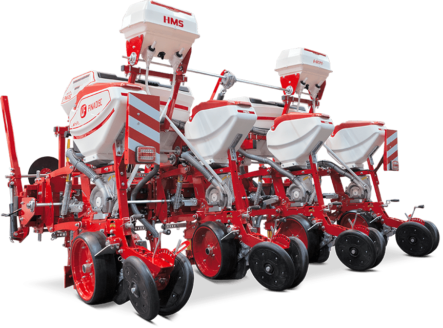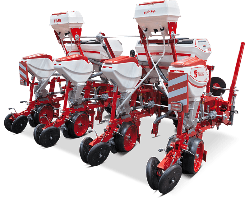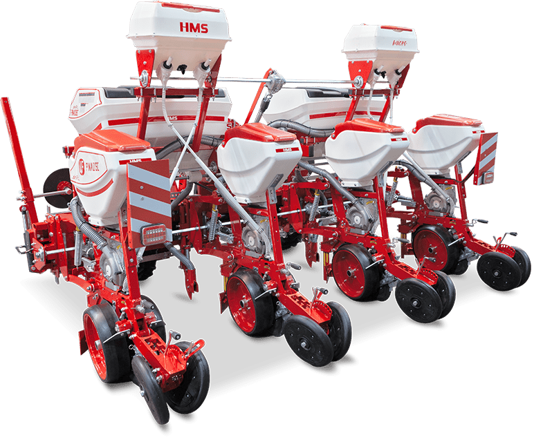 HMS DİSKLİ PNÖMATİK HASSAS EKİM MAKİNALARI her çeşit tohumun hassas olarak, istenilen ekim aralığında ve sıra üzeri mesafesinde ekilmesini sağlar. İsteğe bağlı olarak 4-6-8 sıralı olarak imal edilebilir. Ekici ünitelerde tohum yatağı disk vasıtasıyla açılır. Her ekim ünitesinde özel malzemeden üretilmiş, 2-adet disk bulunmaktadır. Ekici ünitelerin diskli tip olması ve şase önüne takılabilen kesici diskler sayesinde işlenmiş veya yarı işlenmiş sap kalıntıları bulunan tarlalarda çalışabilir. Tekerlekten alınan hareketin ekim ünitelerine iletimi şaft mekanizması ile yapıldığından, sıra üstü mesafelerde hassas ekim yapılabilmektedir. Ekici Ünitelerin her iki tarafında bulunan lastik tekerler sayesinde her türlü toprak şartlarında hassas olarak Derinlik ayarı yapılabilir. Tohum ünite arkasında bulunan V baskı tekerlekleri vasıtasıyla sıkıştırılır. Arka baskı tekerinin uyguladığı basınç ve açı yay vasıtası ile ayarlanabilir. V baskı tekerlekleri toprakta kaymak tabakası oluşumunu önler. Diskli ekim üniteleri erken tavda ekim yapmaya imkan sağlar. Disk ayaklı pnömatik ekim makinaları sırta ekim yapılabilmeye uygundur. Sırtları bozmaz. Tohum yatağı dönerek çalışan diskler tarafından açıldığından sertleşmez. Bitki gelişimine uygundur ve traktöre fazla yük getirmez. Üniteler istenildiği zaman kolayca yol ve iş durumuna geçer. İsteğe göre değişik aksesuarlar montaj edilebilir. Yüksek çalışma hızı ve mükemmel performansı ile zamandan tasarruf ve yüksek verim sağlayan bir ekim makinasıdır.