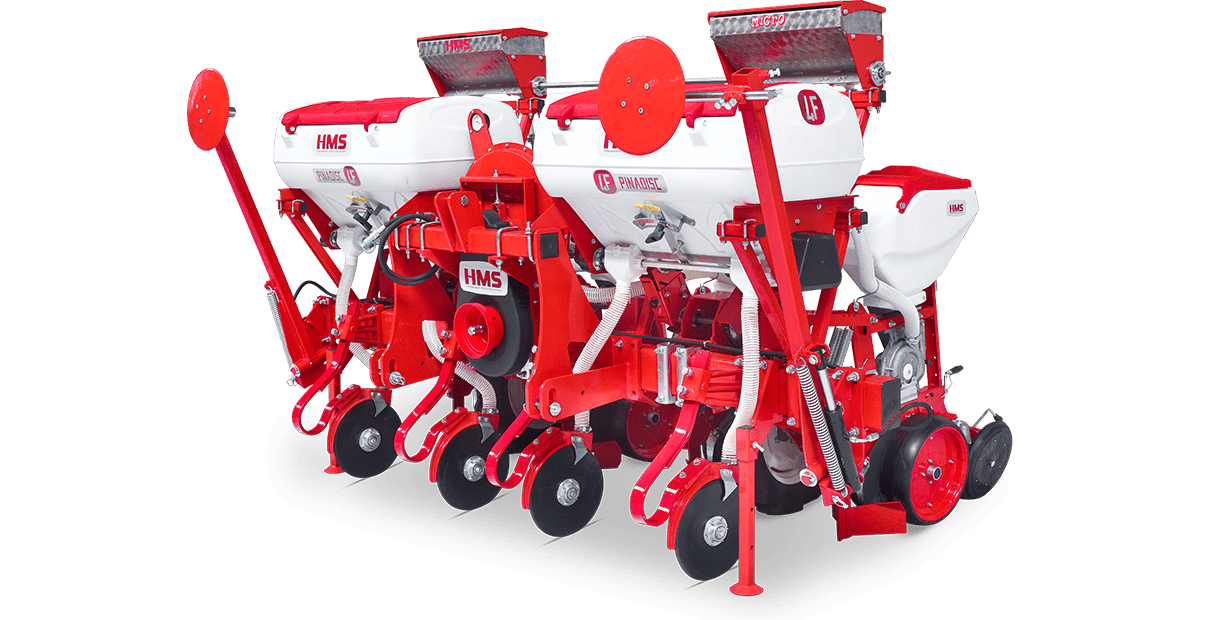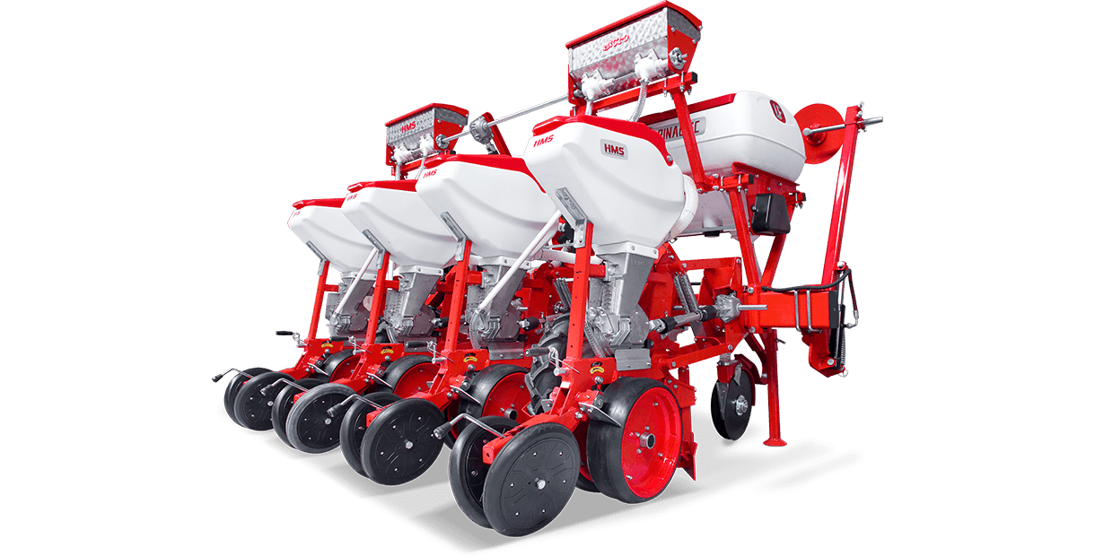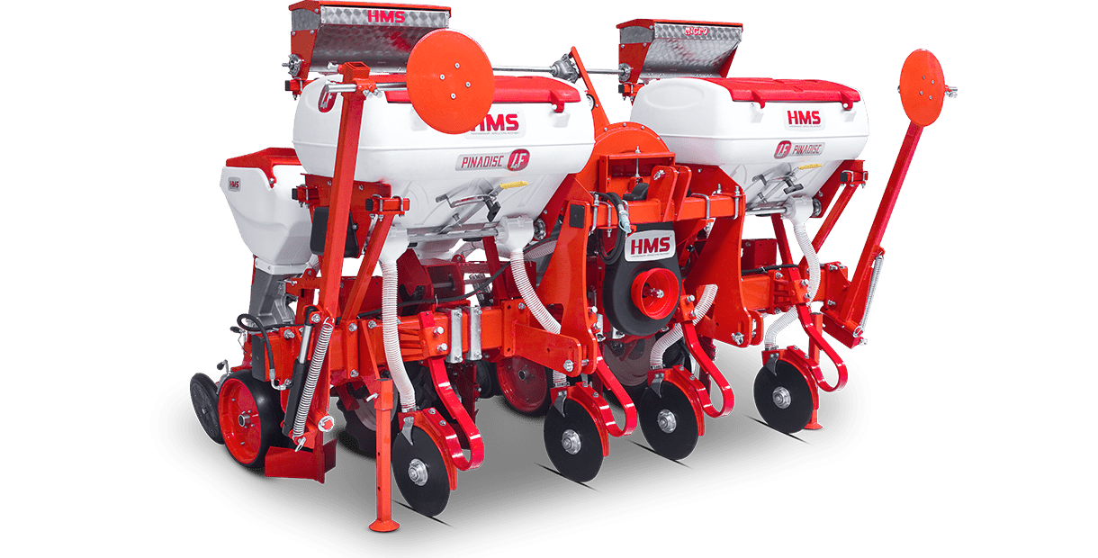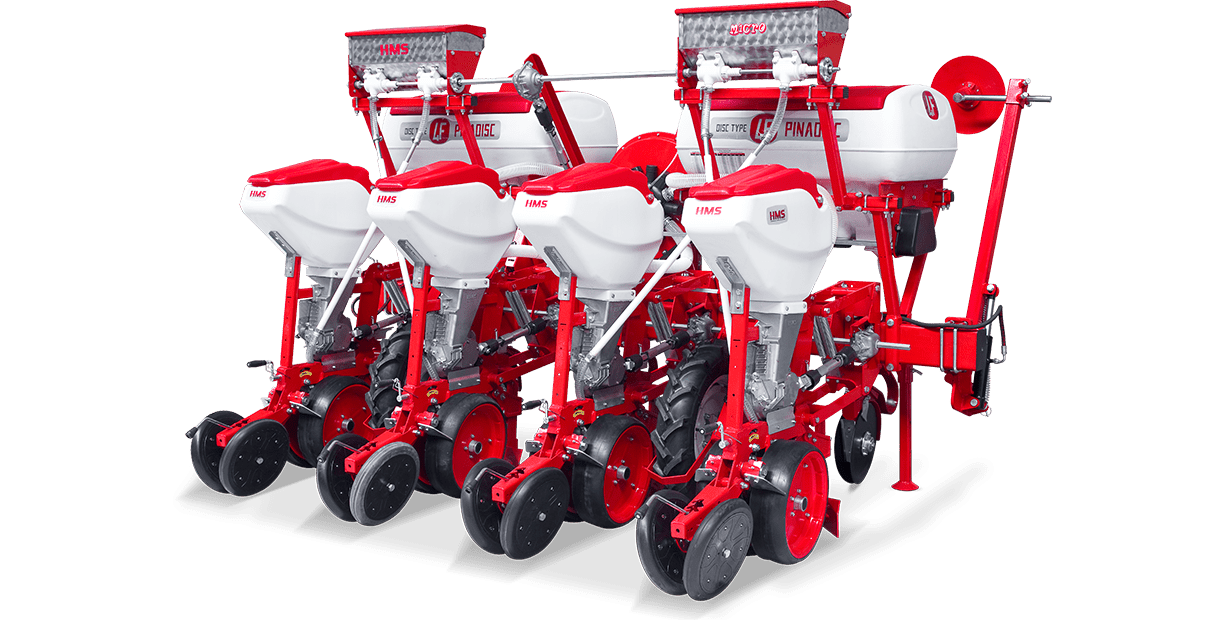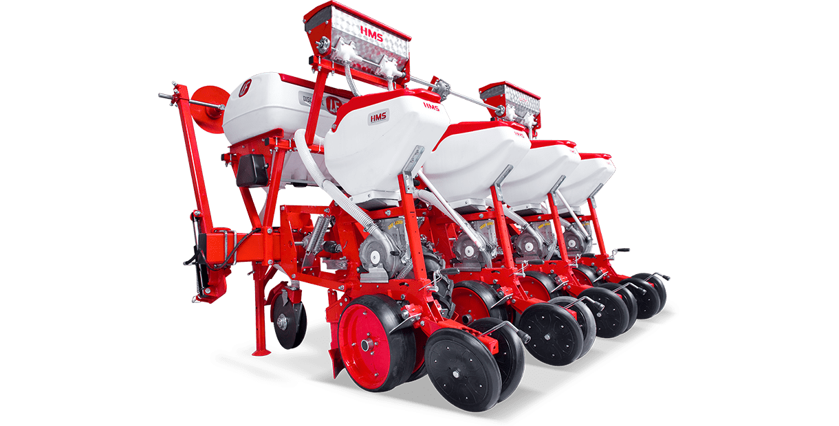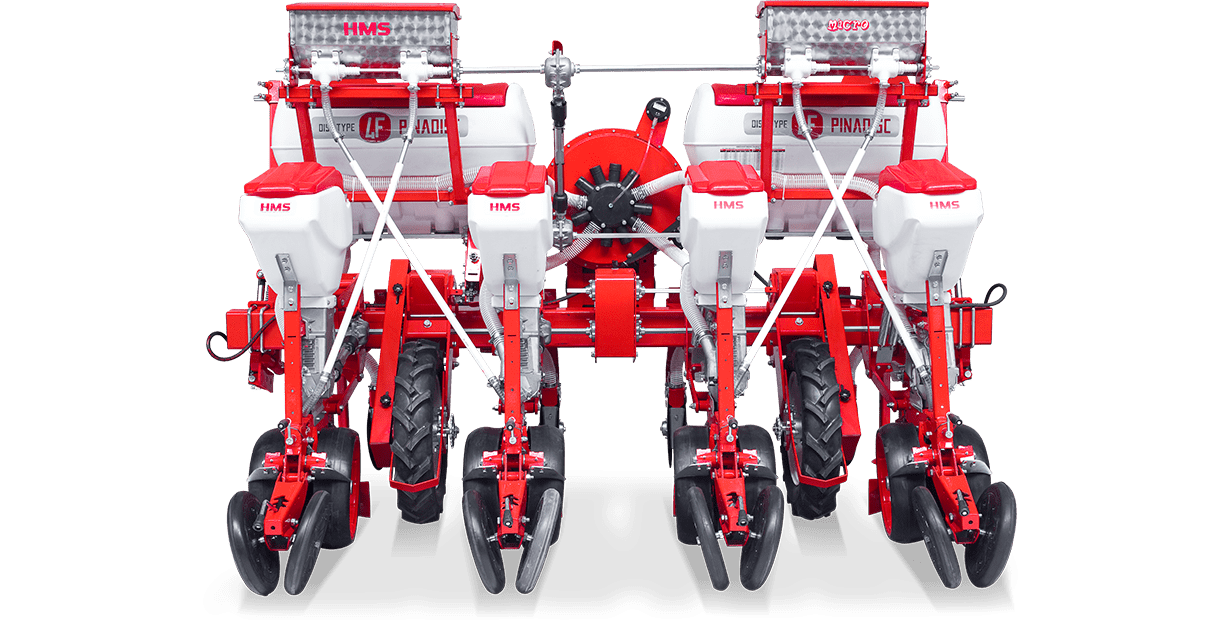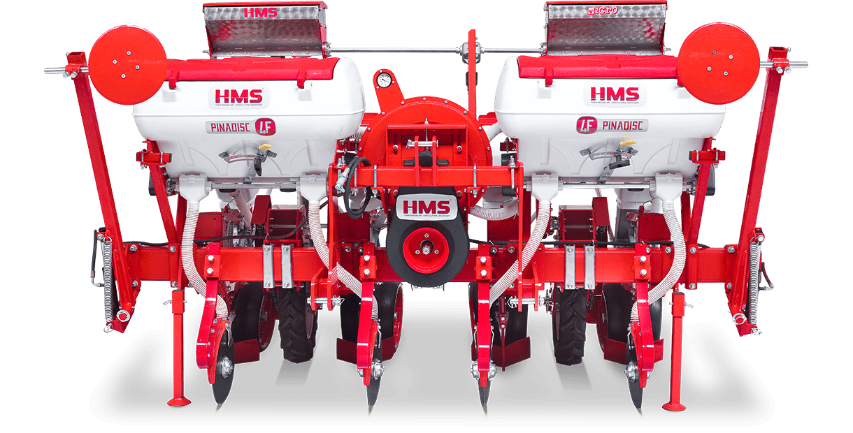 HMS DİSKLİ PNÖMATİK HASSAS EKİM MAKİNALARI her çeşit tohumun hassas olarak, istenilen ekim aralığında ve sıra üzeri mesafesinde ekilmesini sağlar. İsteğe bağlı olarak 4-6-8 sıralı olarak imal edilebilir. Ekici ünitelerde tohum yatağı disk vasıtasıyla açılır. Her ekim ünitesinde özel malzemeden üretilmiş, 2-adet disk bulunmaktadır. Ekici ünitelerin diskli tip olması ve şase önüne takılabilen kesici diskler sayesinde işlenmiş veya yarı işlenmiş sap kalıntıları bulunan tarlalarda çalışabilir. Tekerlekten alınan hareketin ekim ünitelerine iletimi şaft mekanizması ile yapıldığından, sıra üstü mesafelerde hassas ekim yapılabilmektedir. Ekici Ünitelerin her iki tarafında bulunan lastik tekerler sayesinde her türlü toprak şartlarında hassas olarak Derinlik ayarı yapılabilir. Tohum ünite arkasında bulunan V baskı tekerlekleri vasıtasıyla sıkıştırılır. Arka baskı tekerinin uyguladığı basınç ve açı yay vasıtası ile ayarlanabilir. V baskı tekerlekleri toprakta kaymak tabakası oluşumunu önler. Diskli ekim üniteleri erken tavda ekim yapmaya imkan sağlar. Disk ayaklı pnömatik ekim makinaları sırta ekim yapılabilmeye uygundur. Sırtları bozmaz. Tohum yatağı dönerek çalışan diskler tarafından açıldığından sertleşmez. Bitki gelişimine uygundur ve traktöre fazla yük getirmez. Üniteler istenildiği zaman kolayca yol ve iş durumuna geçer. İsteğe göre değişik aksesuarlar montaj edilebilir. Yüksek çalışma hızı ve mükemmel performansı ile zamandan tasarruf ve yüksek verim sağlayan bir ekim makinasıdır.